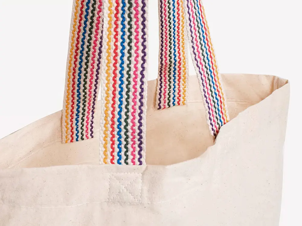 Sac coton fourre-tout 12 litres. Ambiance Jungle, la fête des fleurs. Le toucan est surpris par un incroyable bouquet de fleurs tropicales multicolores sur ce sac fourre-tout. Sac 100% coton couleur crème naturel, contenance 12 litres, et ses poignées à rayures colorées.